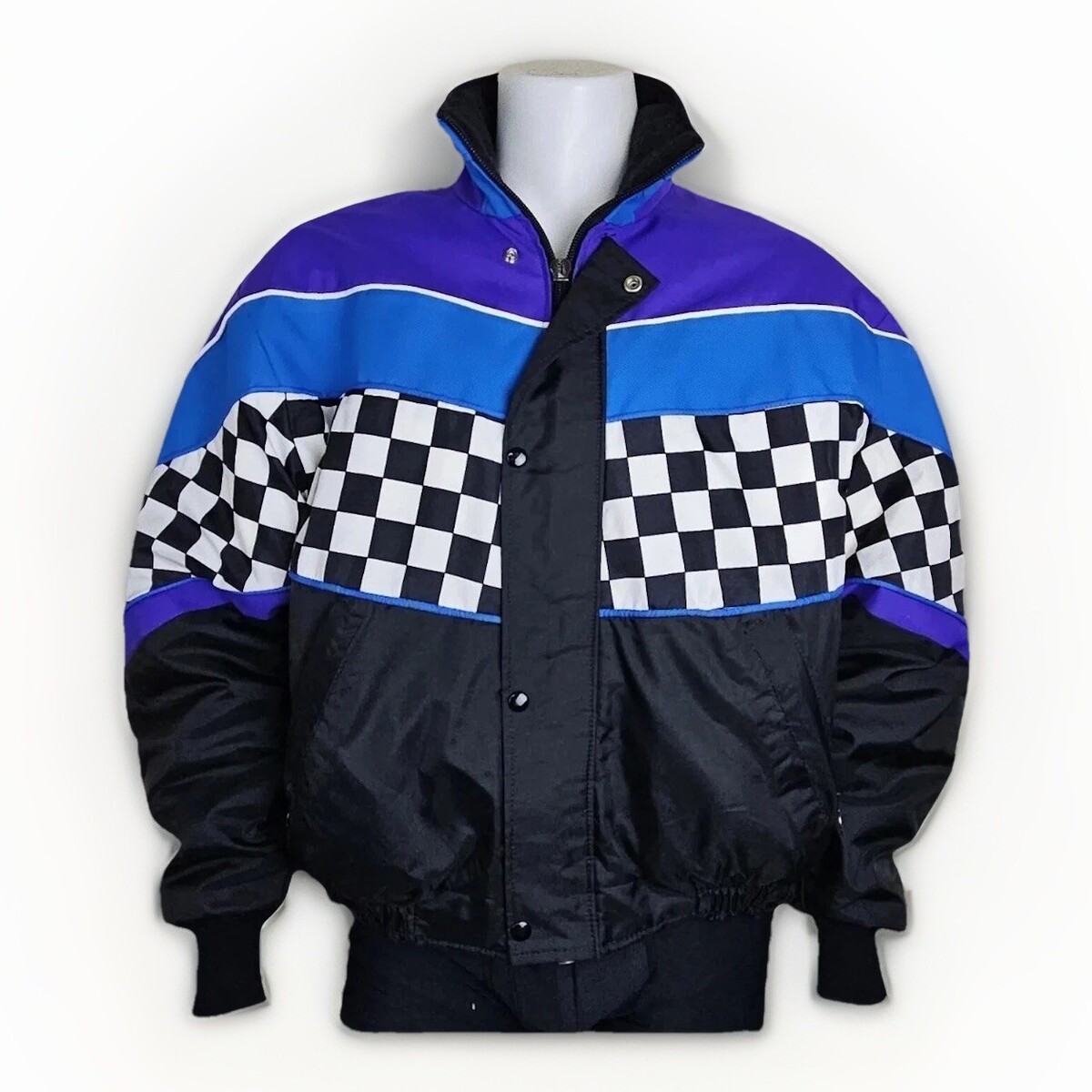 Snowmobile Jacket Mens L Purple Black Checkerboard Vtg USA Sno Rider Thinsulate