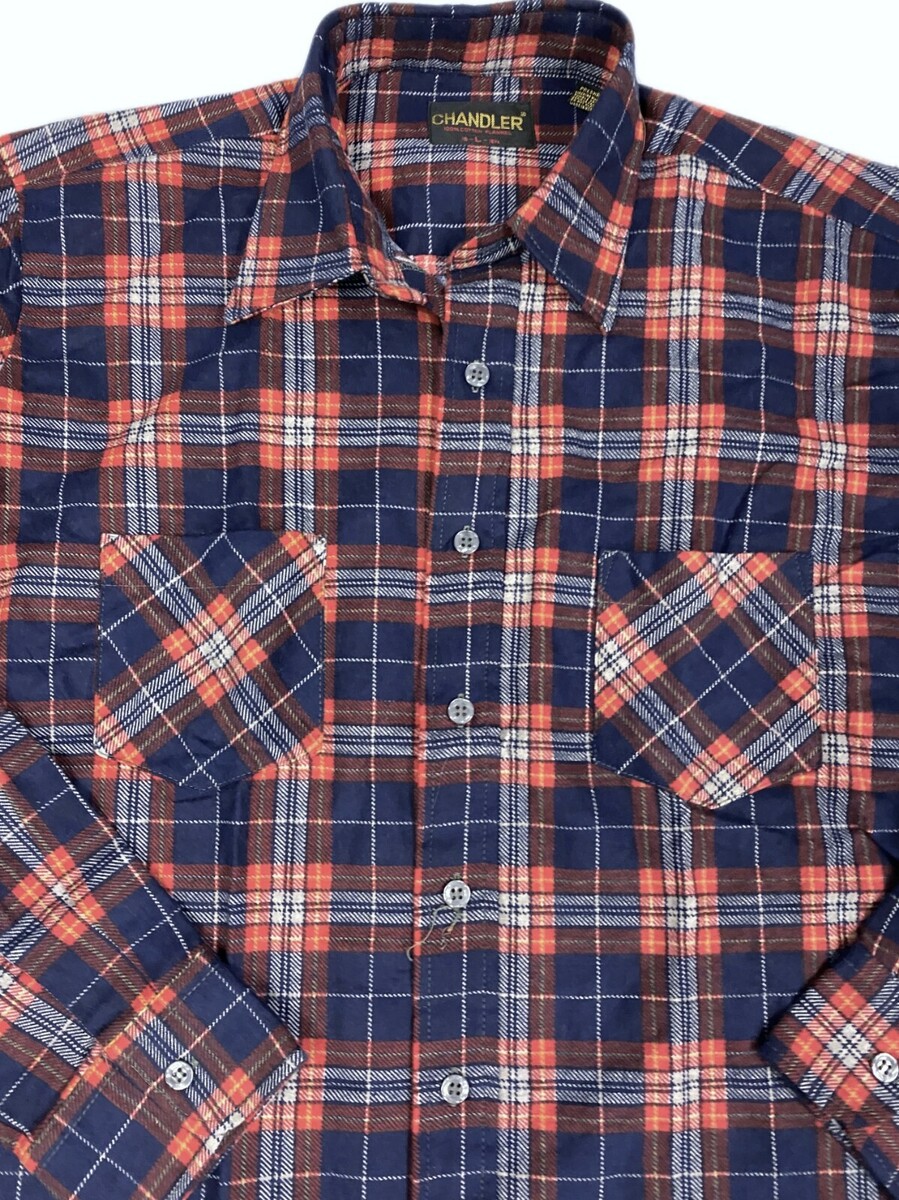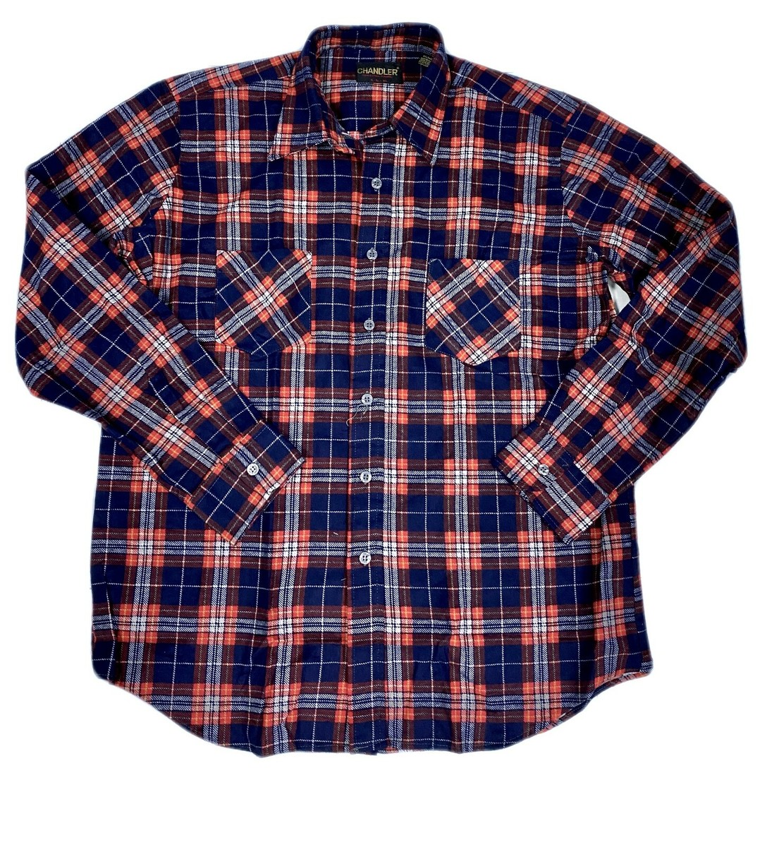 VTG Chandler 80s 90s Mens Flannel Shirt Red Blue Plaid Cotton NWOT Long Sleeve L