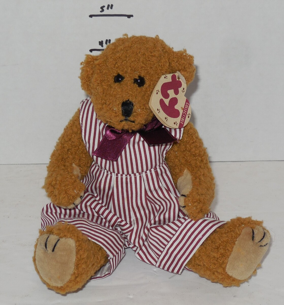 Ty Dexter 6" Attic Treasure Beanie Babies baby plush toy brown Stripe Overalls