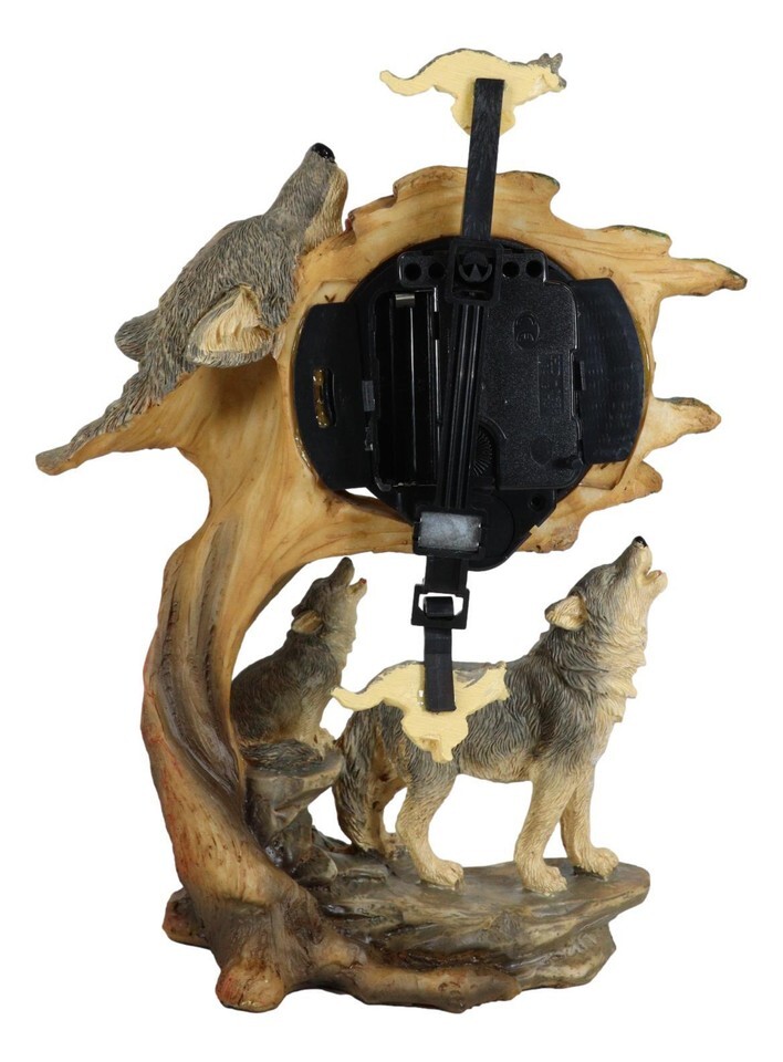 Ebros Howling Gray Wolves Family Table Clock with Pendulum 10.5" Height Decor