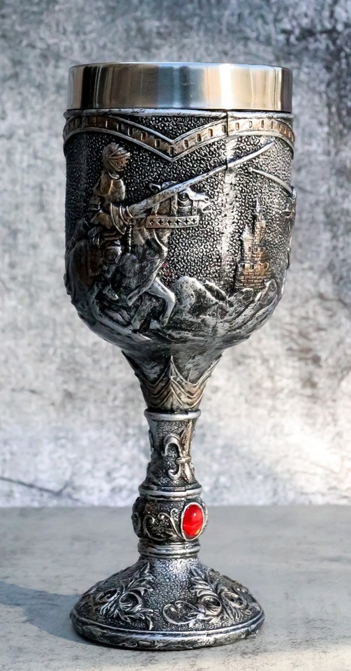 Medieval Castle Jostling Knights On Horse King's Tournament Wine Goblet Chalice