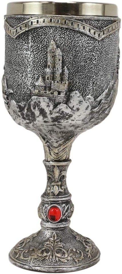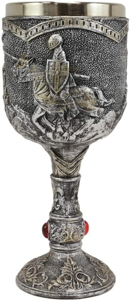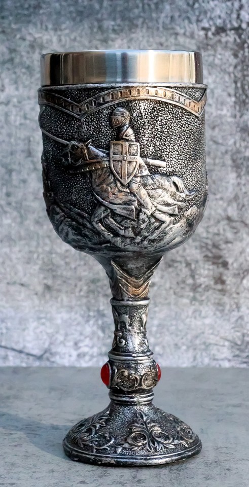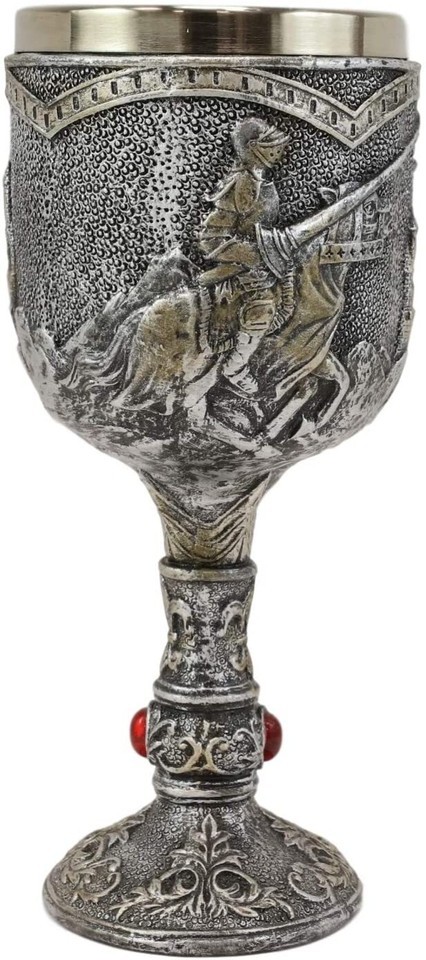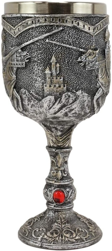 ? This Medieval Jostling Knights On Charging Horse wine goblet is made of fine polyresin and stainless steel, hand painted and polished.