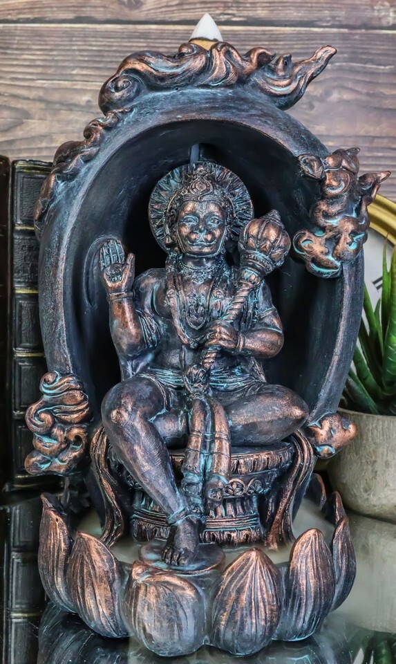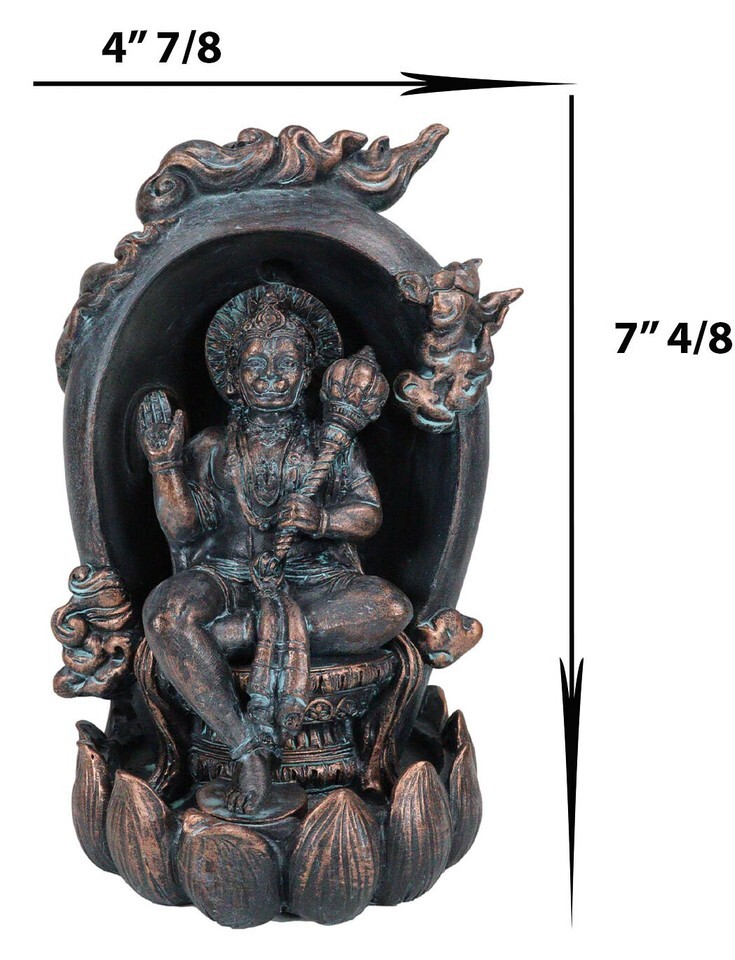 Hindu Buddha Hanuman Monkey God On Lotus Backflow Cone Incense Burner Figurine