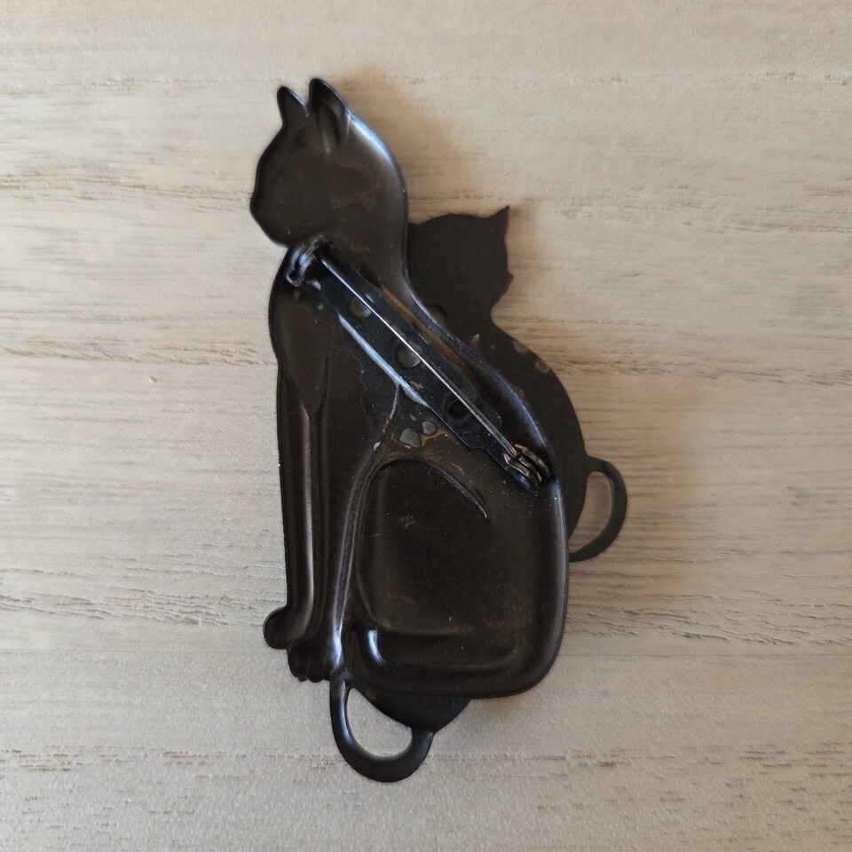 Vintage Tri Color Cat Brooch Pin Silver and similar items