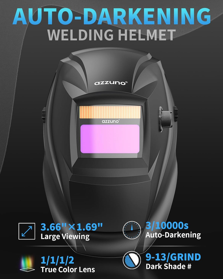 ?COMPLETE WELDING KIT?: Includes essential accessories to get you started right out of the box?Auto Darkening Welding helmet(headband requires assembly), .030" Flux-Cored Wire, Electrode Holder, and Ground Clamp, Contact Tip*2, Nozzle*1, Brush Hammer, and even extra replacement Outer/Inner Lens for helmet.