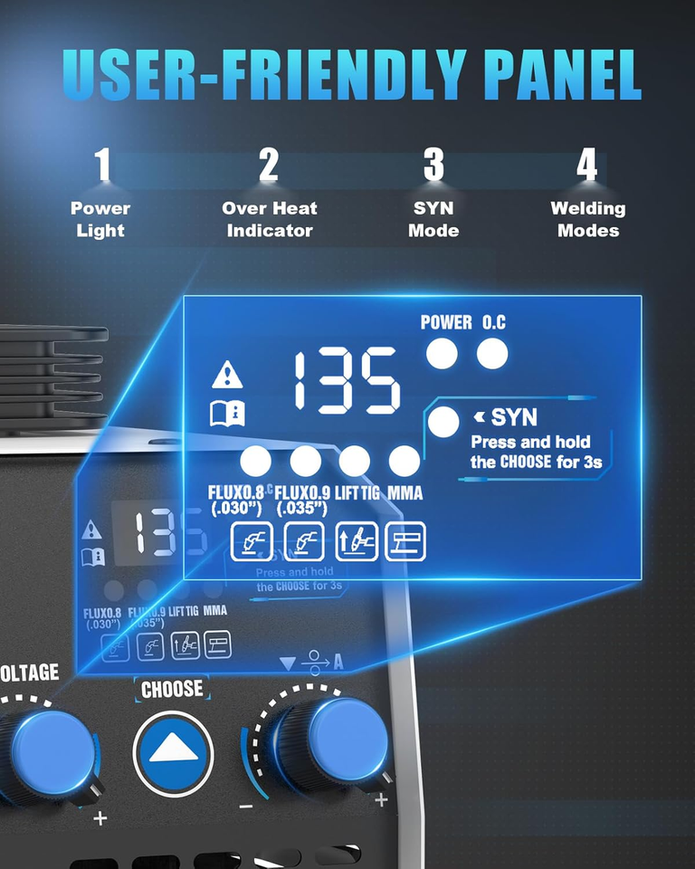 ?SYN CONTROL EASY TO OPERATE?: With SYN control, this welder automatically adjusts the current and voltage based on the selected wire diameter, ensuring optimal settings. Its user-friendly design and smooth wire feeding make it easy for beginners and professionals alike to operate effectively.