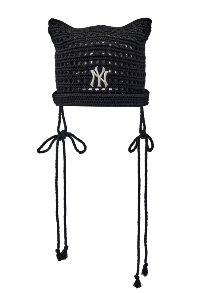 MLB Korea Summer Ribbon Meow Cat Beanie Hat NY Yankness Casual Lifestyle Black