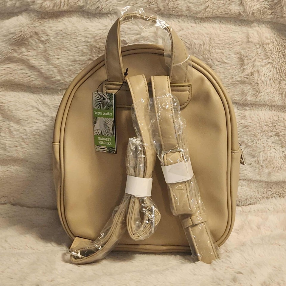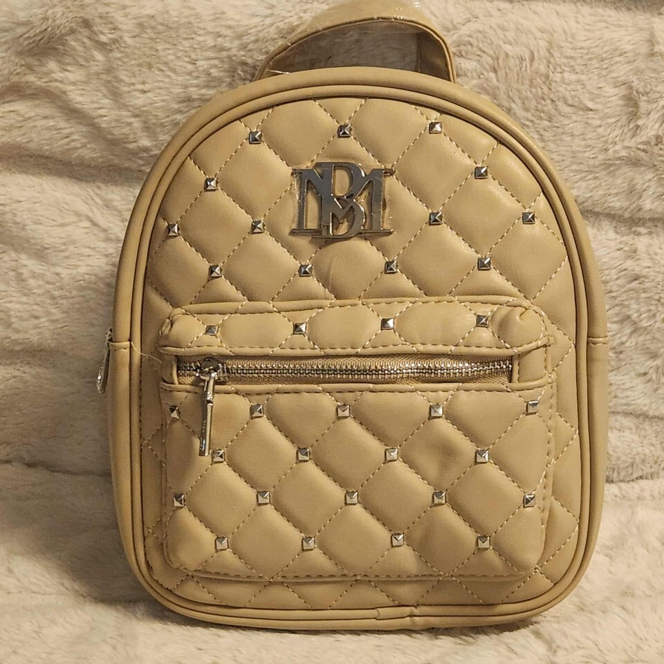This luxurious Badgley Mischka backpack features a sophisticated quilted design in a chic tan color, accented with elegant silver details, vegan leather. Crafted for both style and practicality, it offers a sleek and modern look perfect for any occasion. NWT - retails for $99