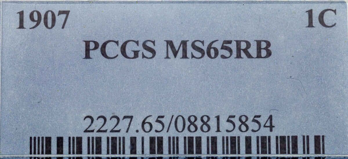 1907 1C Indian Cent Graded by PCGS as MS65RB Gorgeous Early Cent!