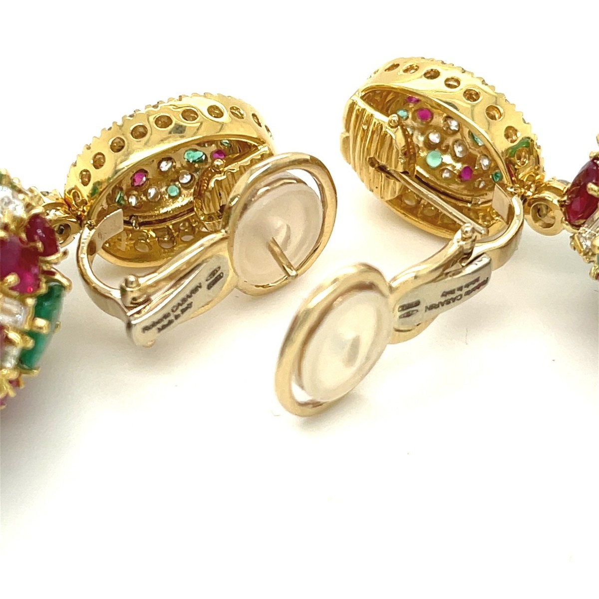 Roberto Casarin 18k Yellow Gold Diamond, Ruby, and Emerald "Bom Bom" Earrings