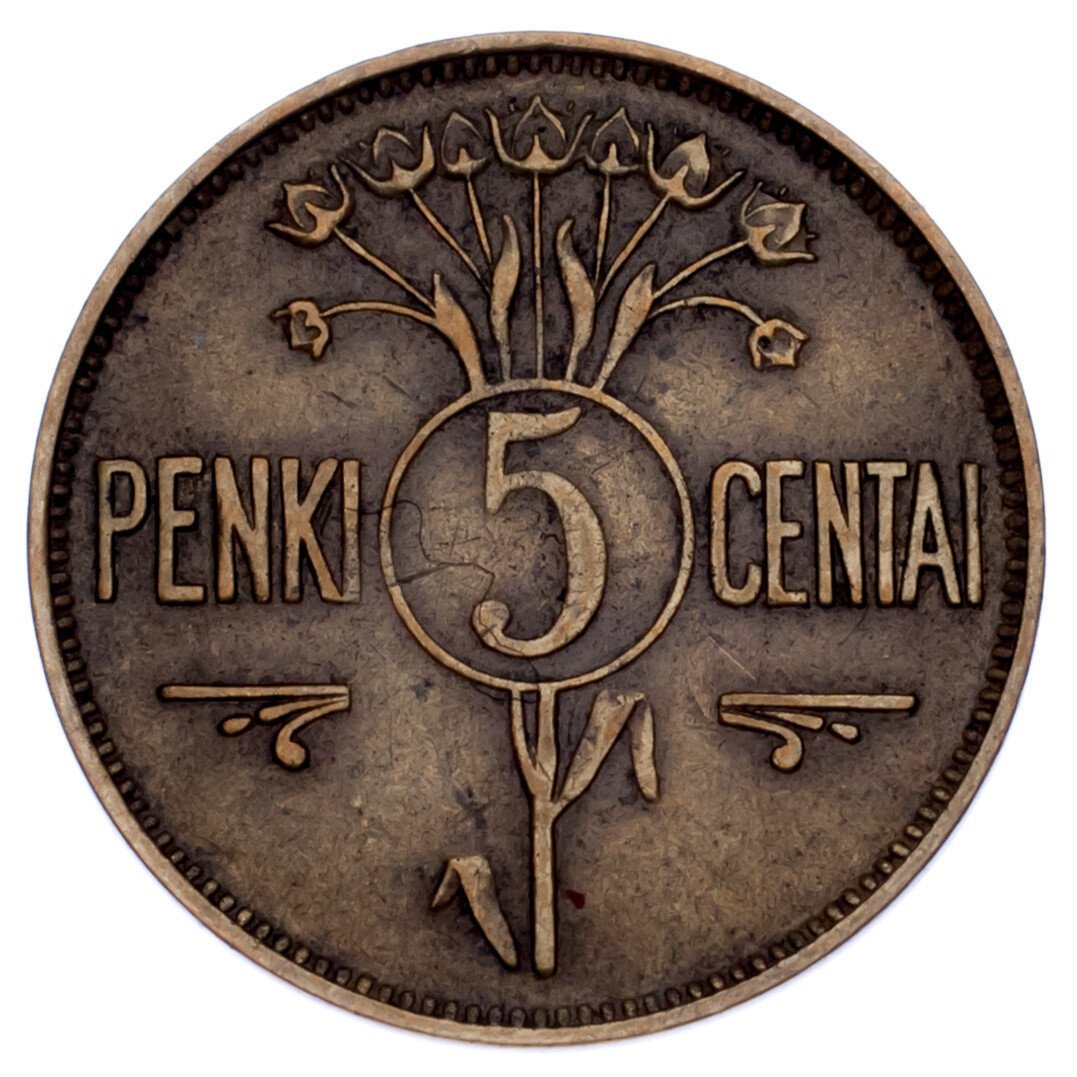 1925 Lithuania 5 Centai, Extra Fine+ (XF+), KM#72, Aluminum-Bronze (12,000,000)