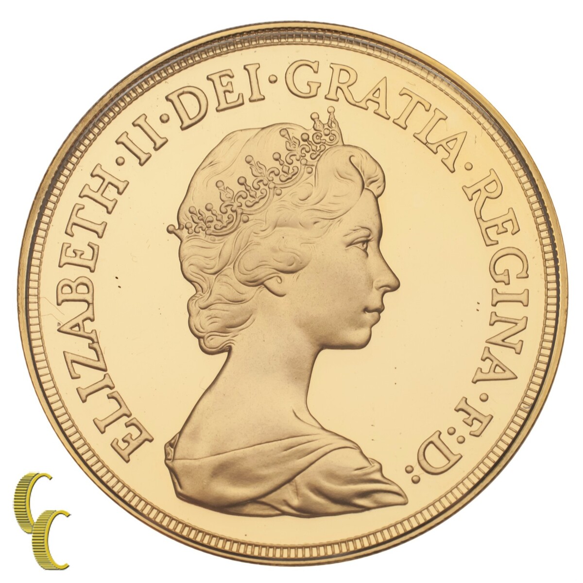 Il dritto raffigura il famoso ritratto di Arnold Machin di Sua Majesty la Regina Elisabetta II che e apparso su quasi tutte le monete del Regno Unito dal 1968.