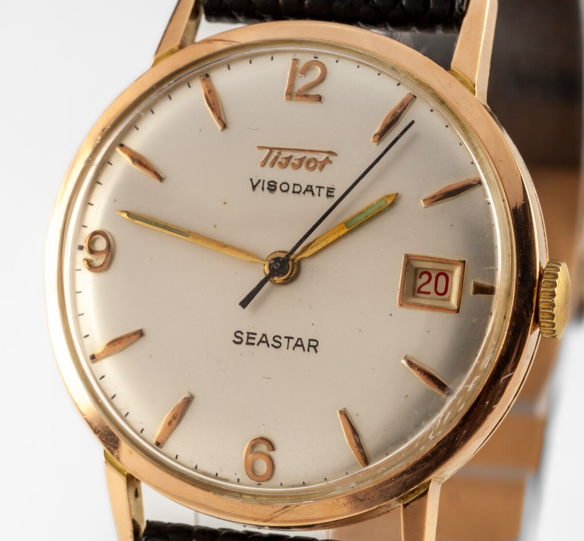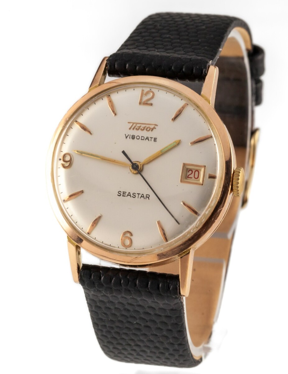 Montre automatique pour homme Tissot Visodate Seaster en or rose 14 carats 27B.621