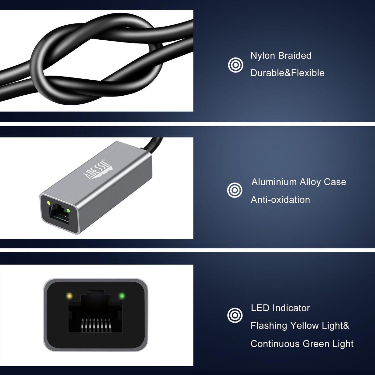 Adesso AUH-5000 USB-C to Ethernet Network Adapter - Gigabit Speed, Aluminum Allo