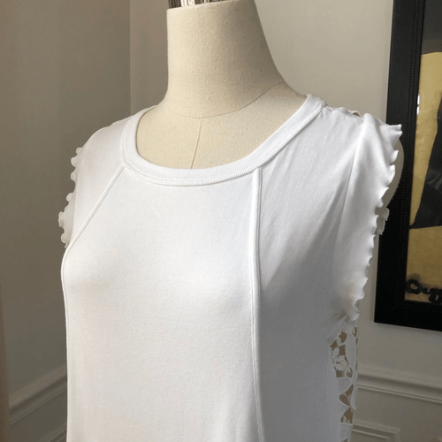 Sandro Paris Helium Lace back top with ruffle cap sleeve. Sandro size 2 which is equivalent to a medium.