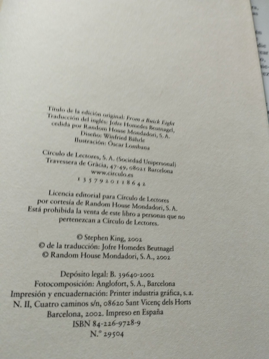Buick 8 un Voiture Pervers STEPHEN KING 2002 Cercle - Livre Espagnol Am