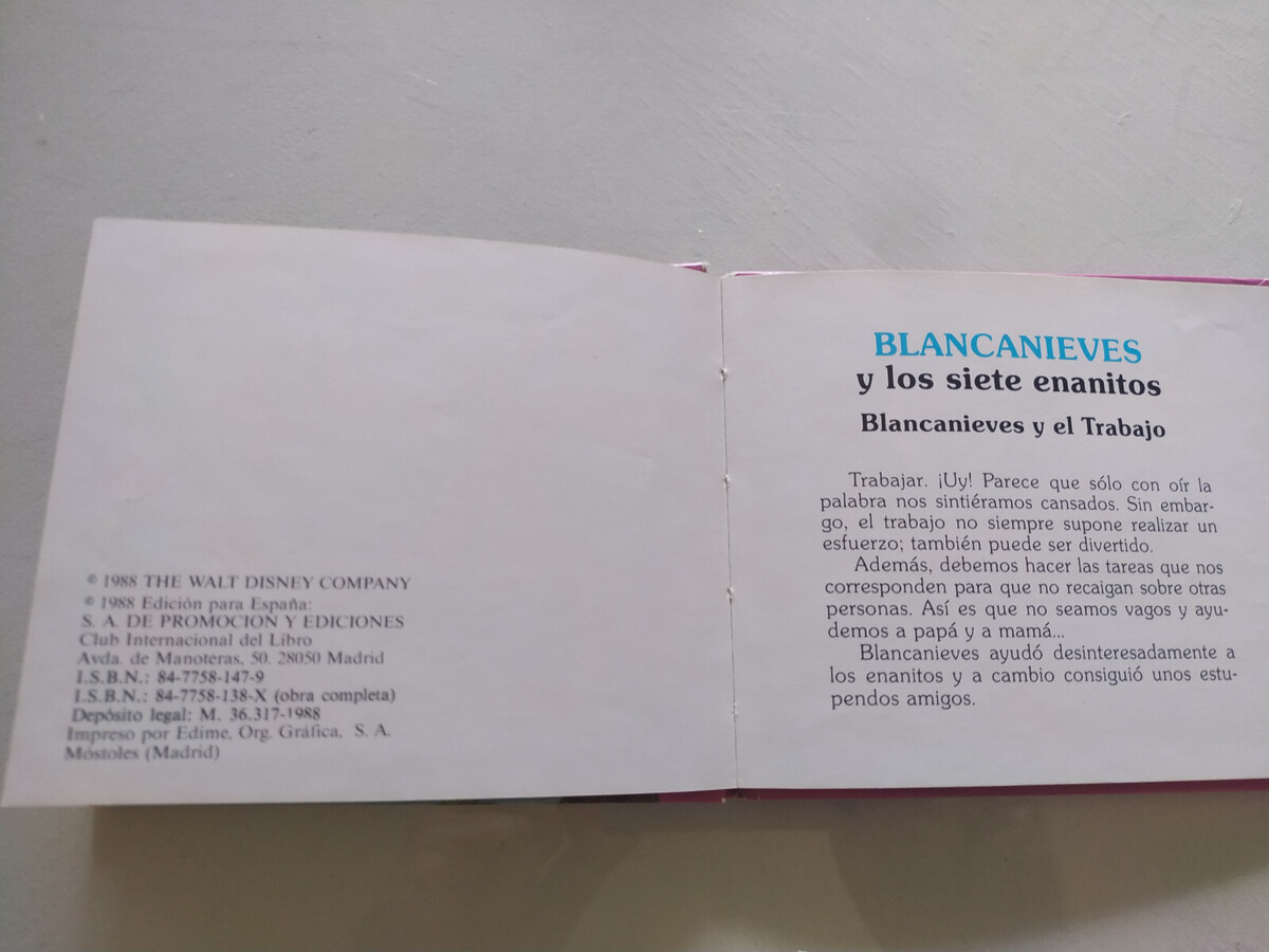 Blancanieves Et los 7 Nains el Travail WALT DISNEY 1988 - Livre cuento Espagnol