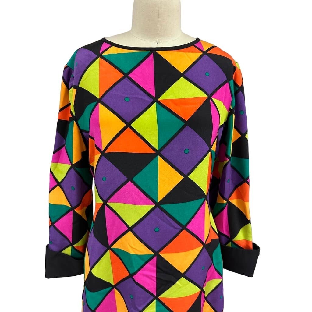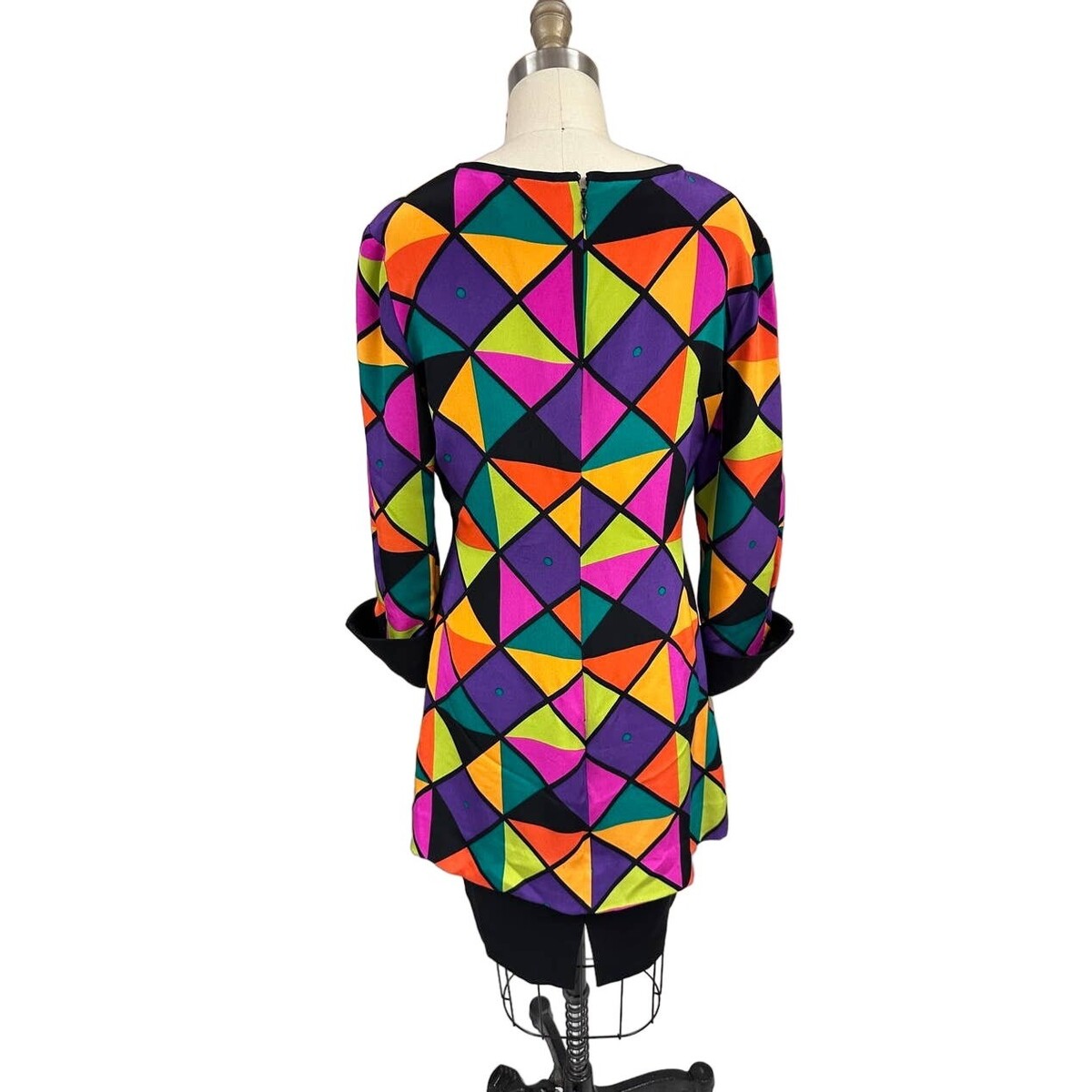 VTG 1980s Kathryn Dianos Silk Dress Geometric Print Shift YKK Japan Zip Sz 8 USA