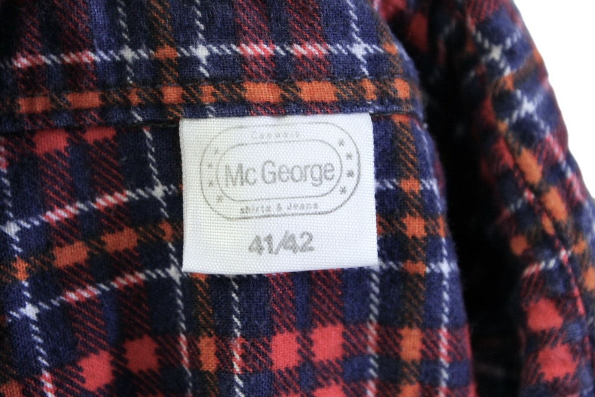 VTG 1950s McGeorge Flannel Shirt Red Blue Plaid Thick Cotton Grunge Mens L Tall