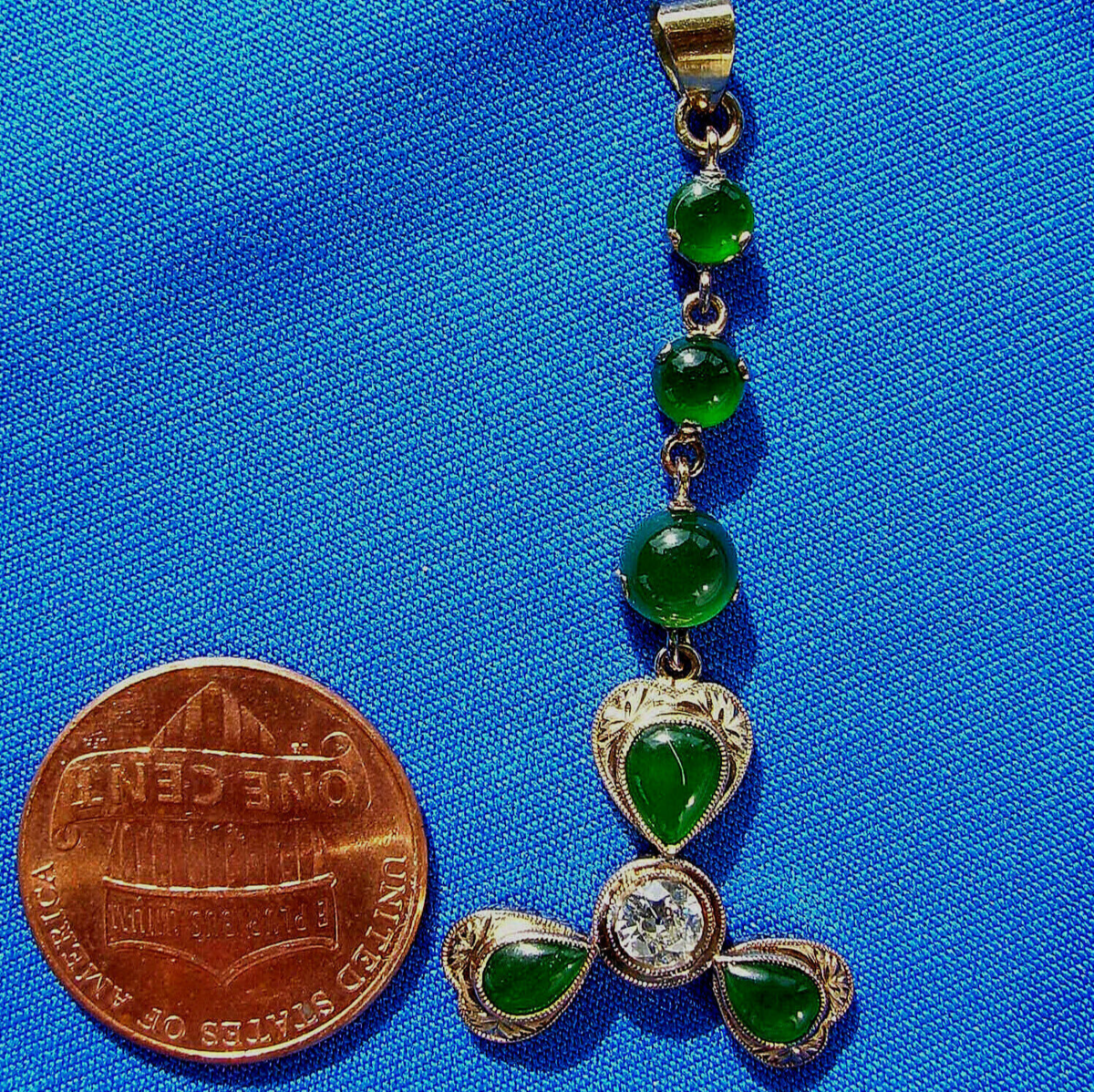 Antique Green JADE European Diamond Deco Pendant Victorian 14K ROSE GOLD Charm