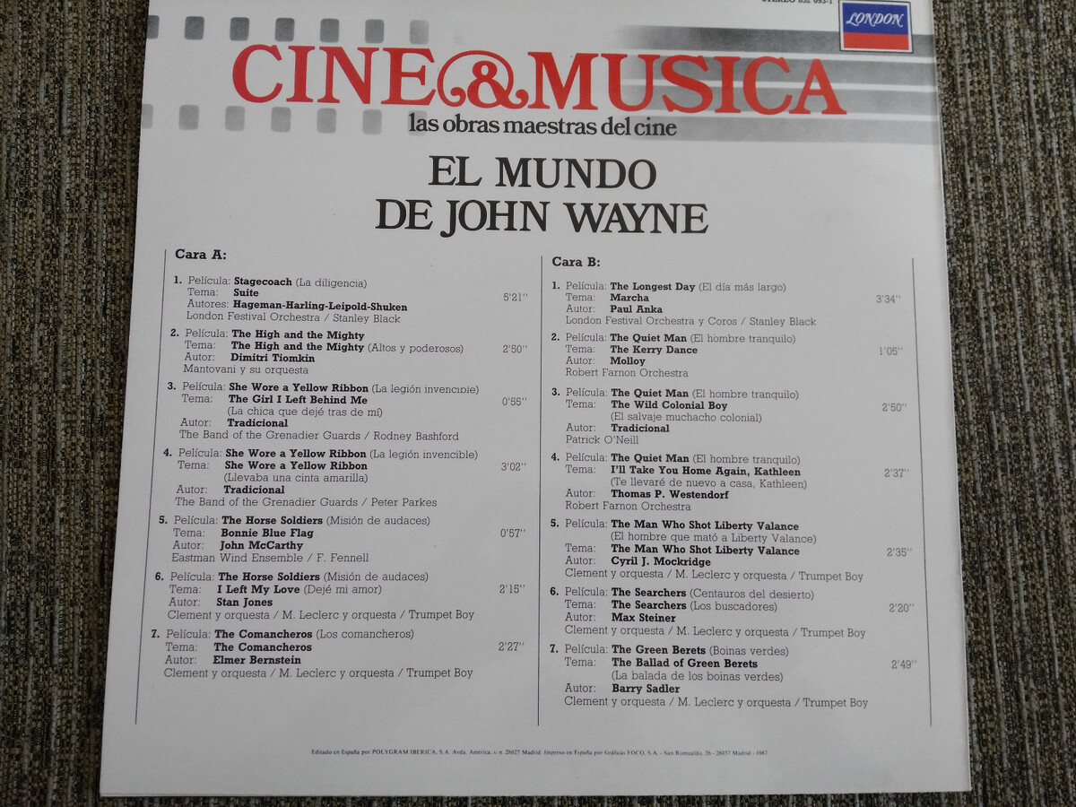 El Mondo Di John Wayne Soundtrack LP Vinilo 12" 1987 VG+/VG+ London