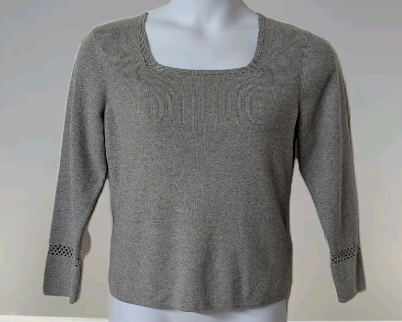Womens Mercer Street Studio Sweater Size Large Gray 3/4 Sleeves Cutout Design