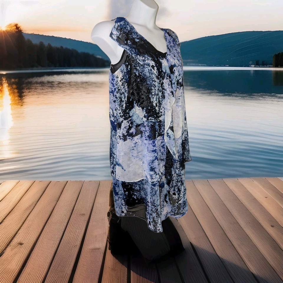 SIMPLY VERA WANG Sleeveless Dress WATERCOLOR Purple Blue Black Women's Sz Large . Condition is New with tags. Shipped with USPS Ground Advantage.
