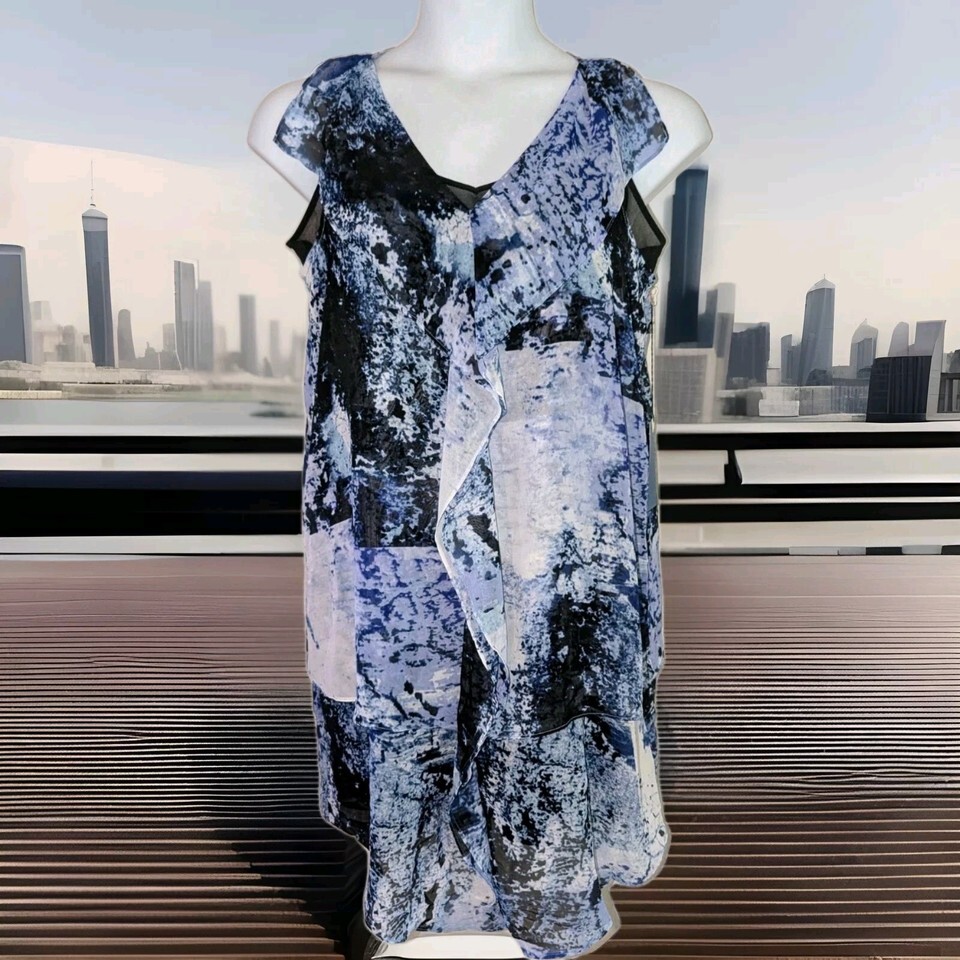 SIMPLY VERA WANG Sleeveless Dress WATERCOLOR Purple Blue Black Women's Sz Large
