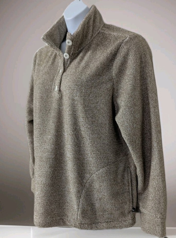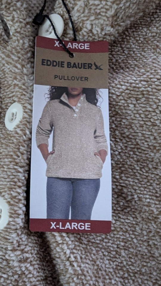 NWT Eddie Bauer Women's Quarter Button Up Pullover Sweater Pumice XL