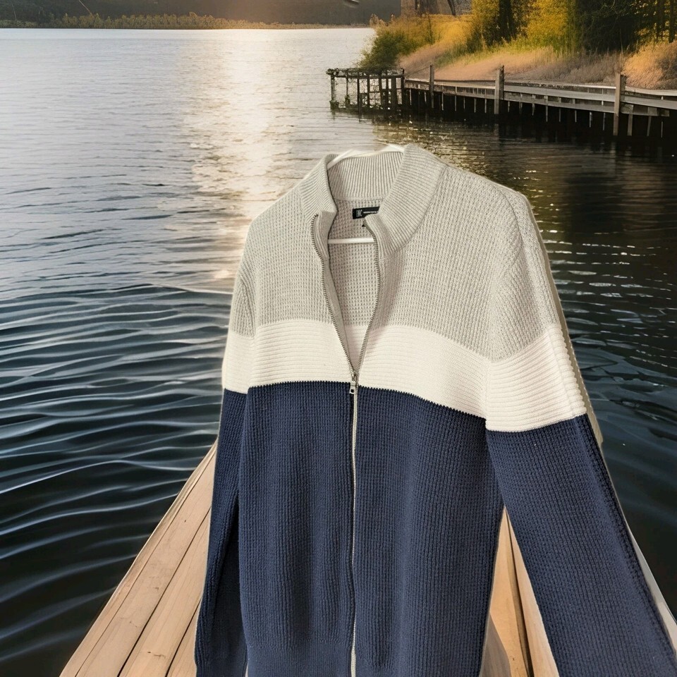 I.N.C. International Concepts Men's Cotton Colorblocked Full-Zip Sweater Sz Med. Condition is Pre-owned - Excellent. Shipped with USPS Ground Advantage.