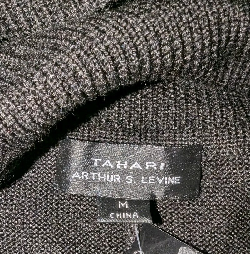 Tahari Black Sweater Dress Wool Blend Cowl Neck Cable Knit Short Sleeves Sz M. Condition is New with tags. Shipped with USPS Ground Advantage.
