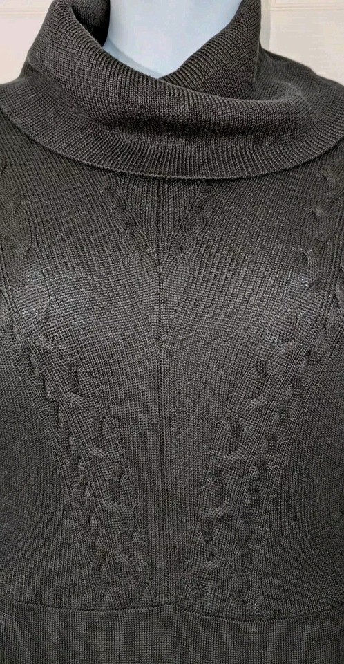 Tahari Black Sweater Dress Wool Blend Cowl Neck Cable Knit Short Sleeves Sz M