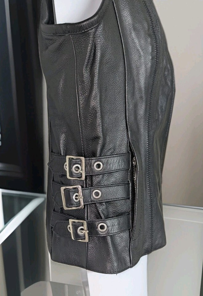 TRUE ELEMENT Women's Zipper Front V-Neck Motorcycle Leather Vest Size Small