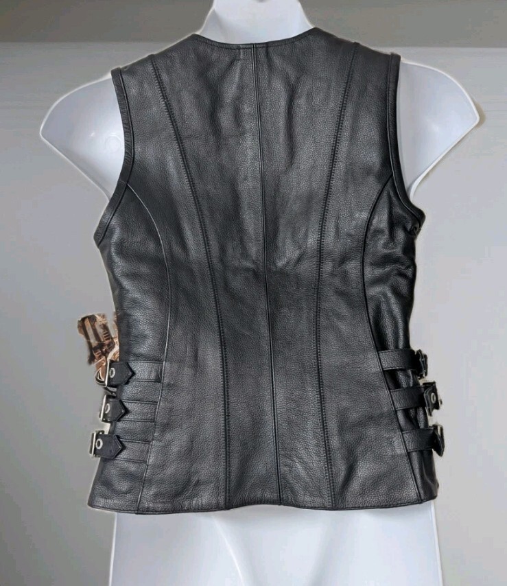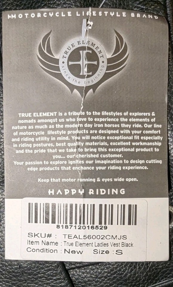 TRUE ELEMENT Women's Zipper Front V-Neck Motorcycle Leather Vest Size Small . Condition is New with tags. Shipped with USPS Ground Advantage.