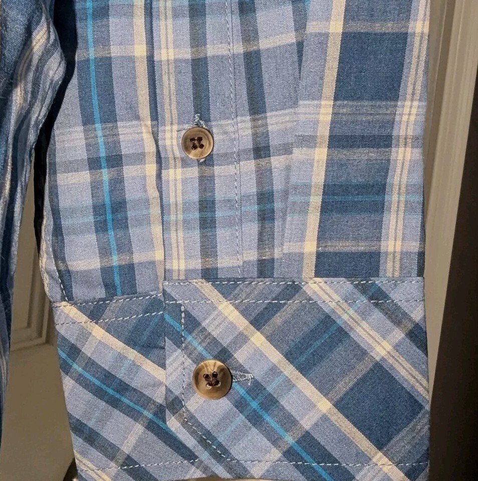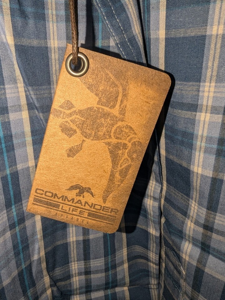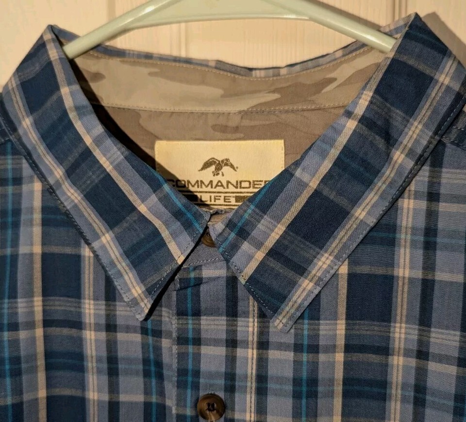 NWT Commander Life Men's Large Shirt Blue Plaid Woven Long Sleeve Button Front. Condition is New with tags. Shipped with USPS Ground Advantage.
