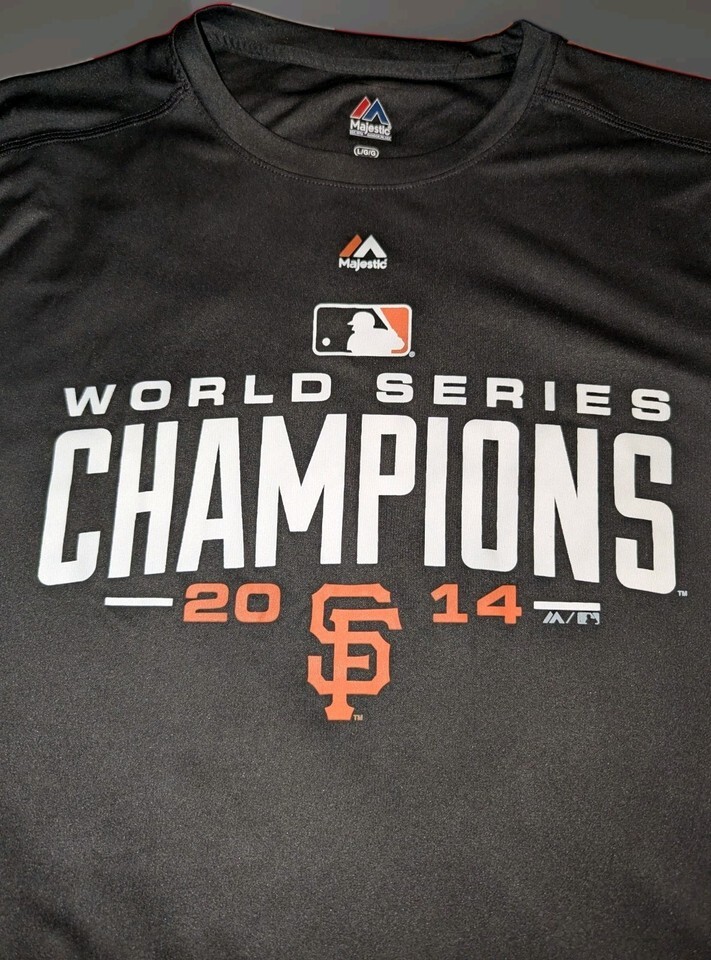 Majestic Mens Shirt MLB World Series Champions 2014 San Francisco Giants Large . Condition is Used. Shipped with USPS Ground Advantage.