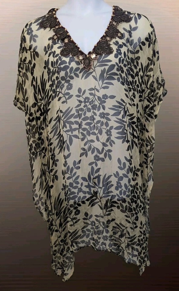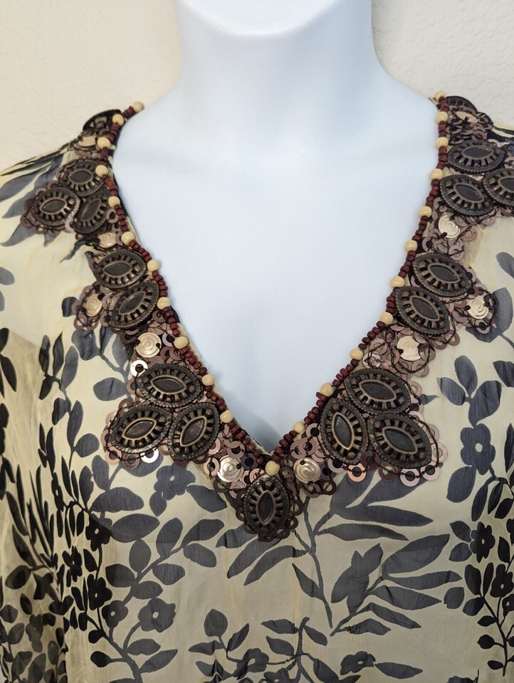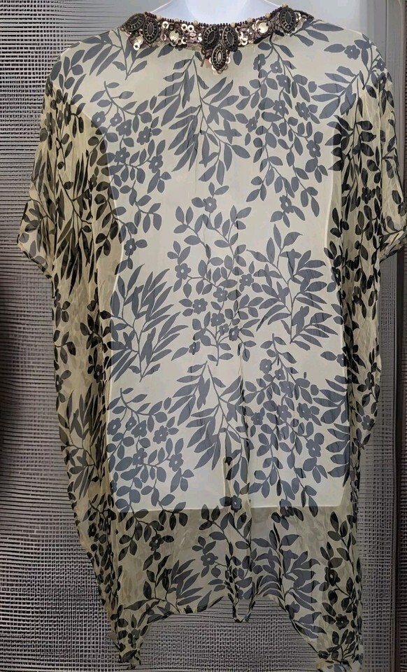 Women's Skemo Beaded Kaftan Mini Dress Swim Cover Up Size XL Floral Print