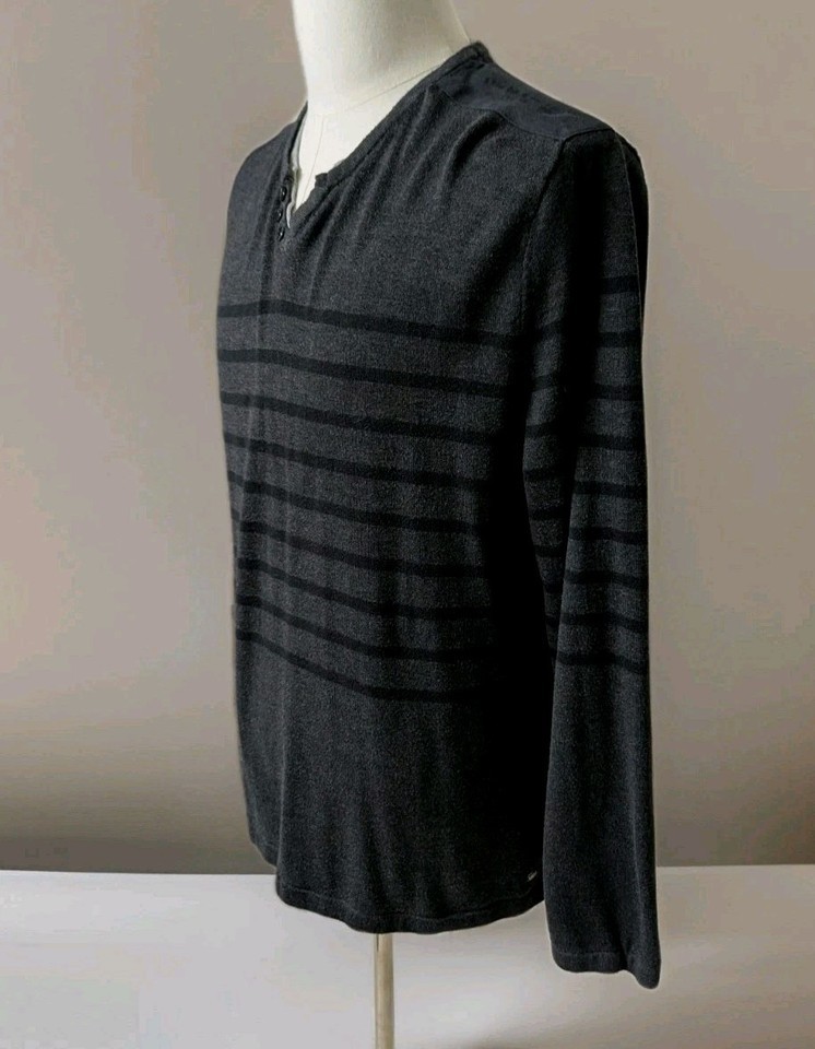 Buffalo by David Bitton Mens Sweater Gray Stripe LS Hybrid V Neck Henley XL. Condition is Pre-owned - Excellent. Shipped with USPS Ground Advantage.