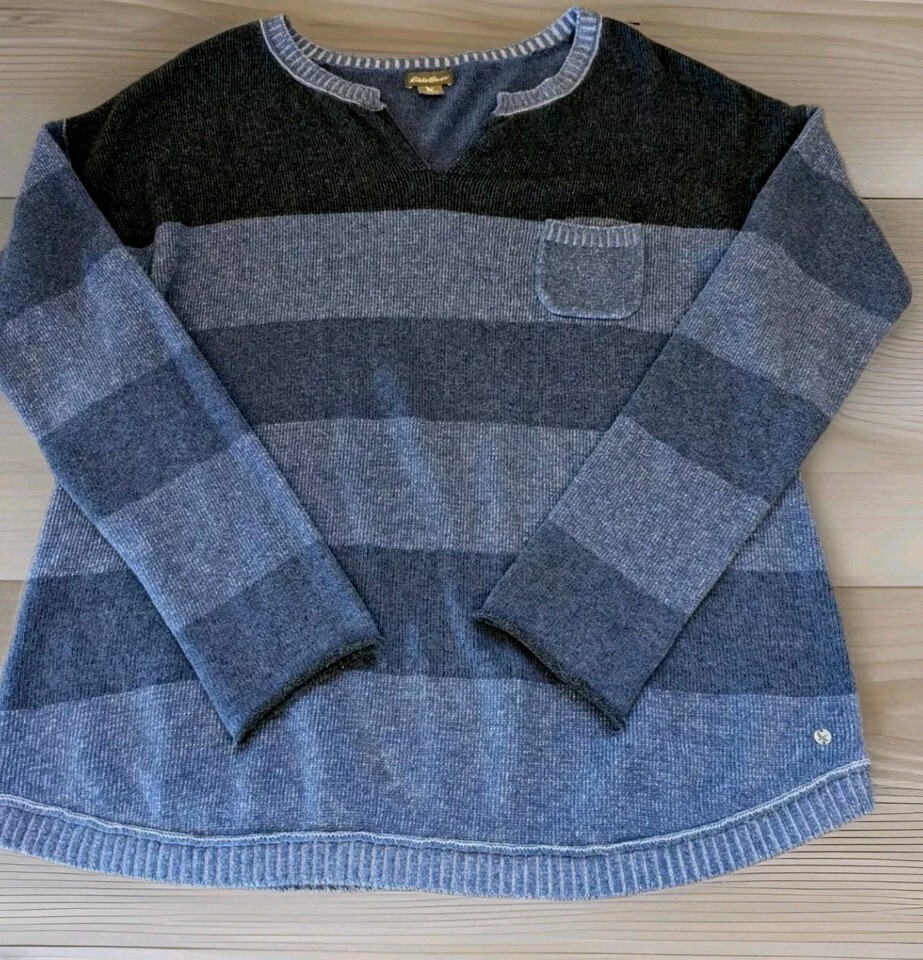 Womens Eddie Bauer Blue Stripe Sweater Size Large . Condition is Pre-owned. Shipped with USPS Ground Advantage.