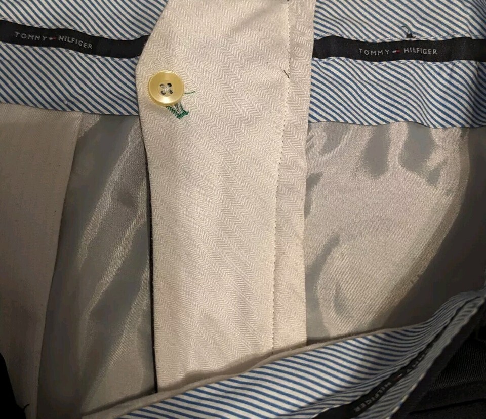 Vintage Tommy Hilfiger Worsted Wool Dress Pants Black Flat Front Slacks 42s x36w. Condition is Pre-owned. Shipped with USPS Ground Advantage.