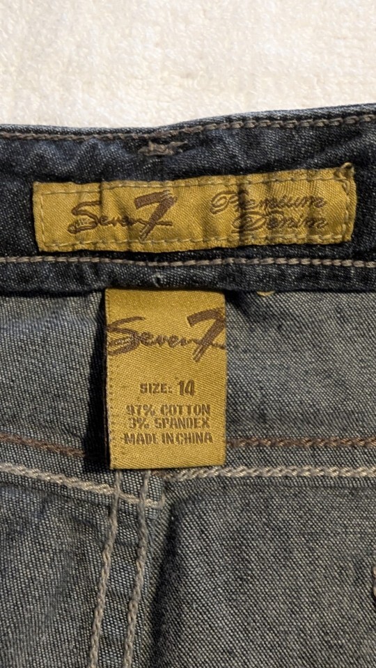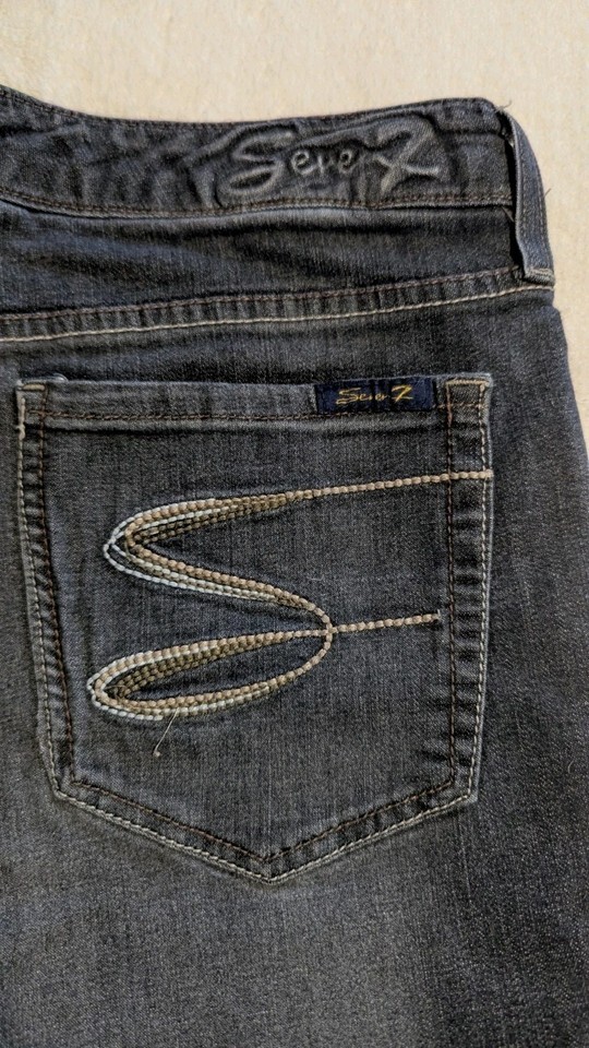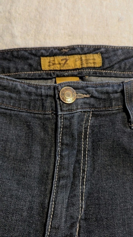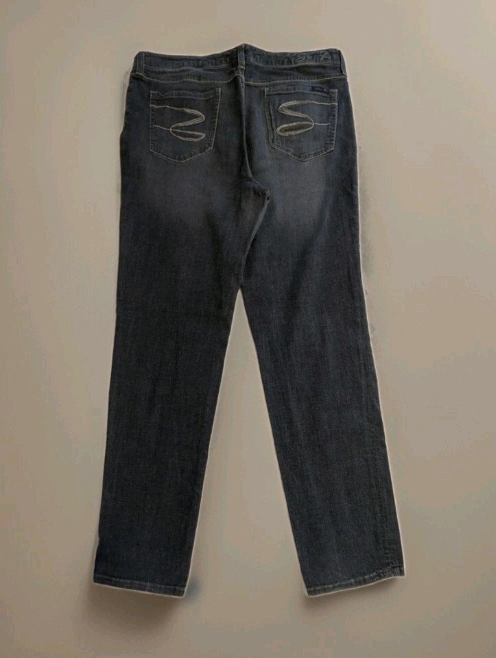 Seven7 Womens Blue Denim Dark Wash Stright Leg Jean Size 14. Condition is Pre-owned - Excellent. Shipped with USPS Ground Advantage.