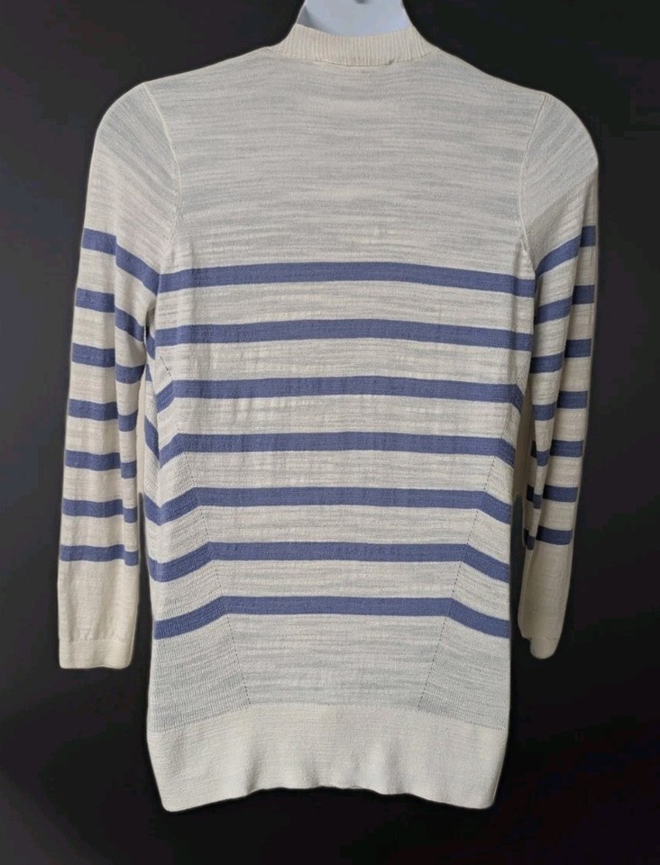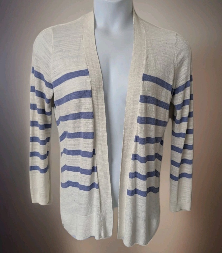 Loft Cardigan Sweater Blue White Striped Women's Size Small . Condition is Pre-owned - Excellent. Shipped with USPS Ground Advantage.