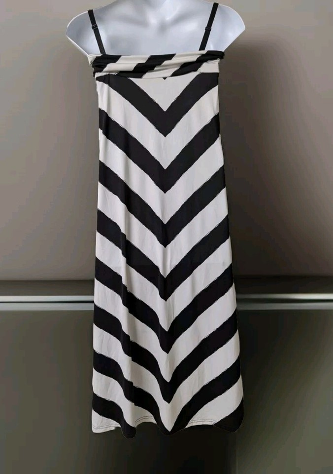 Denim-licious Womens 2XL Black White V-Striped Maxi Dress . Condition is Pre-owned. Shipped with USPS Ground Advantage.