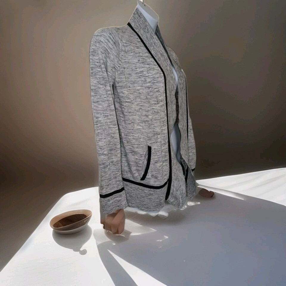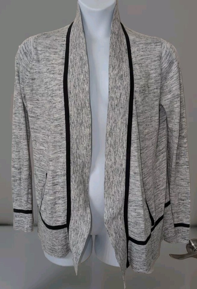 LOU GREY Sweater Medium Open Front Cardigan Long Sleeve Cotton Gray. Condition is Pre-owned. Shipped with USPS Ground Advantage.