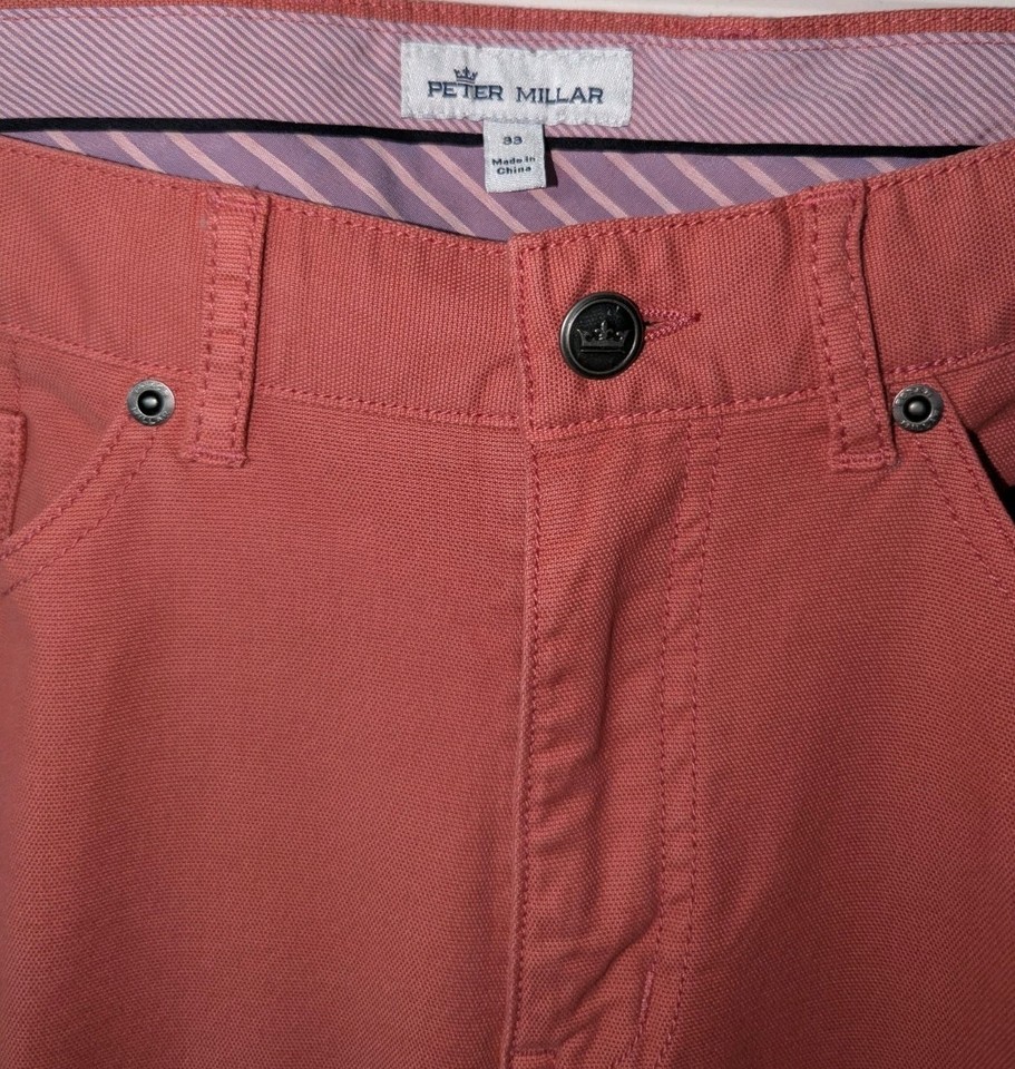 Peter Millar Cape Red Ultimate Sateen Five-Pocket Pants MS19B86 Sz 33Cotton. Condition is Pre-owned - Excellent. Shipped with USPS Ground Advantage.