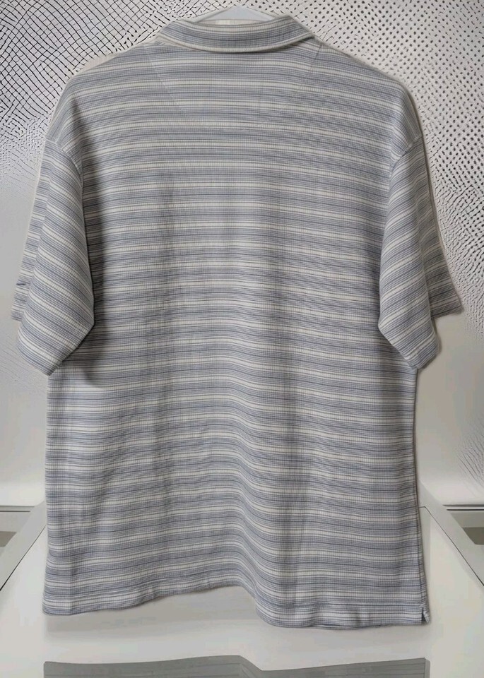 NIKE GOLF Sphere Dry Striped Polo Shirt White and Blue SZ Large 100% Poly