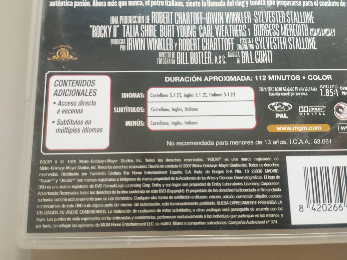 Rocky II Sylvester Stallone - DVD Espagnol Anglais Region Italienne 2 Am