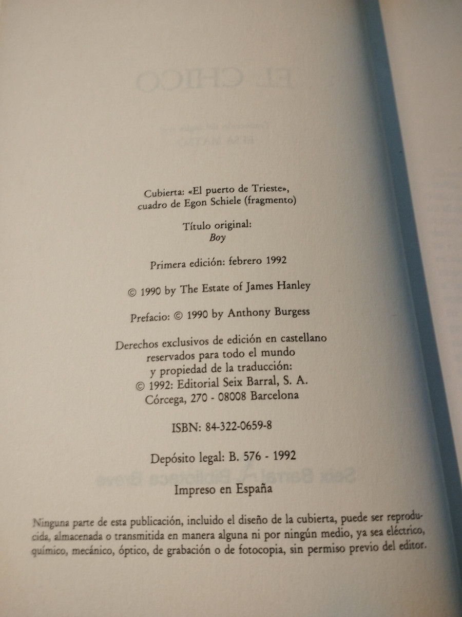 El Chico James Hanley Seix Barral 1992 - and similar items