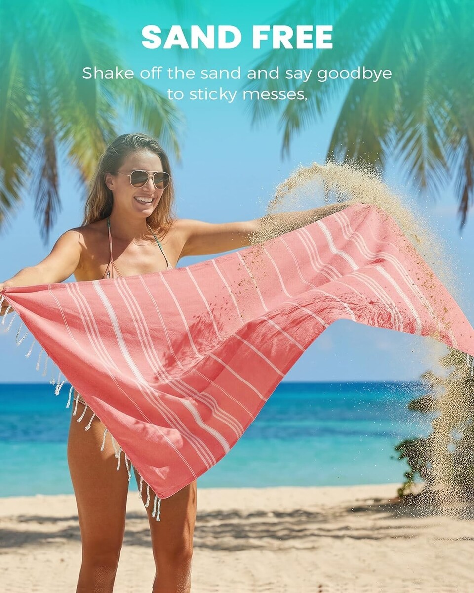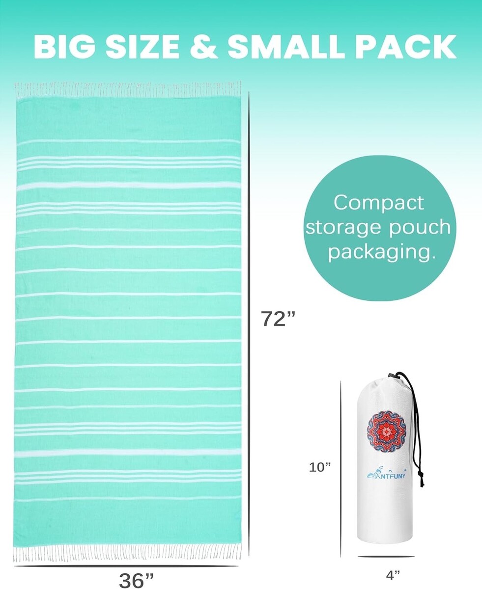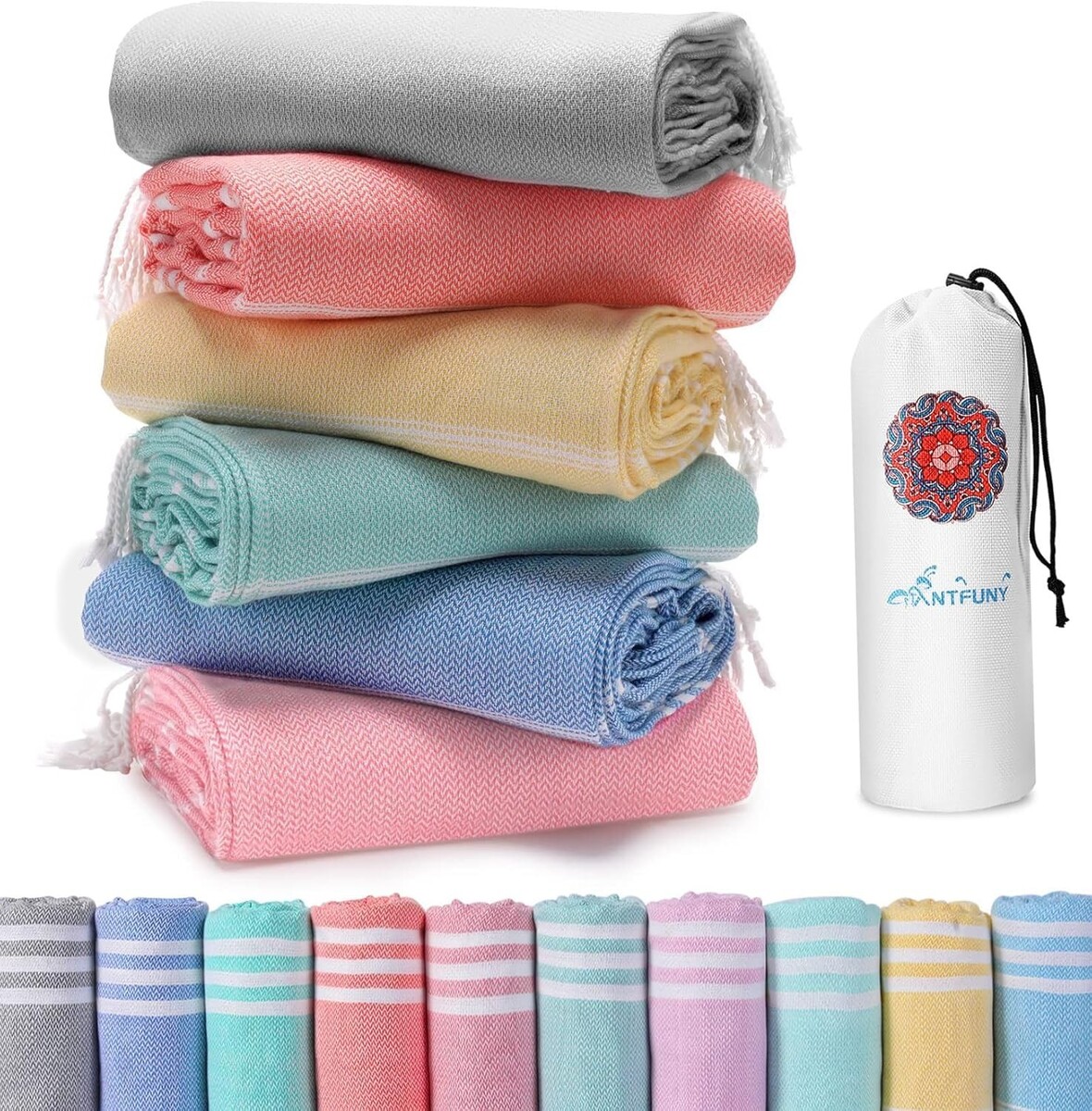 Oversized Turkish Beach Towels - Fast Drying, Sandless, Lightweight 6-Piece Set