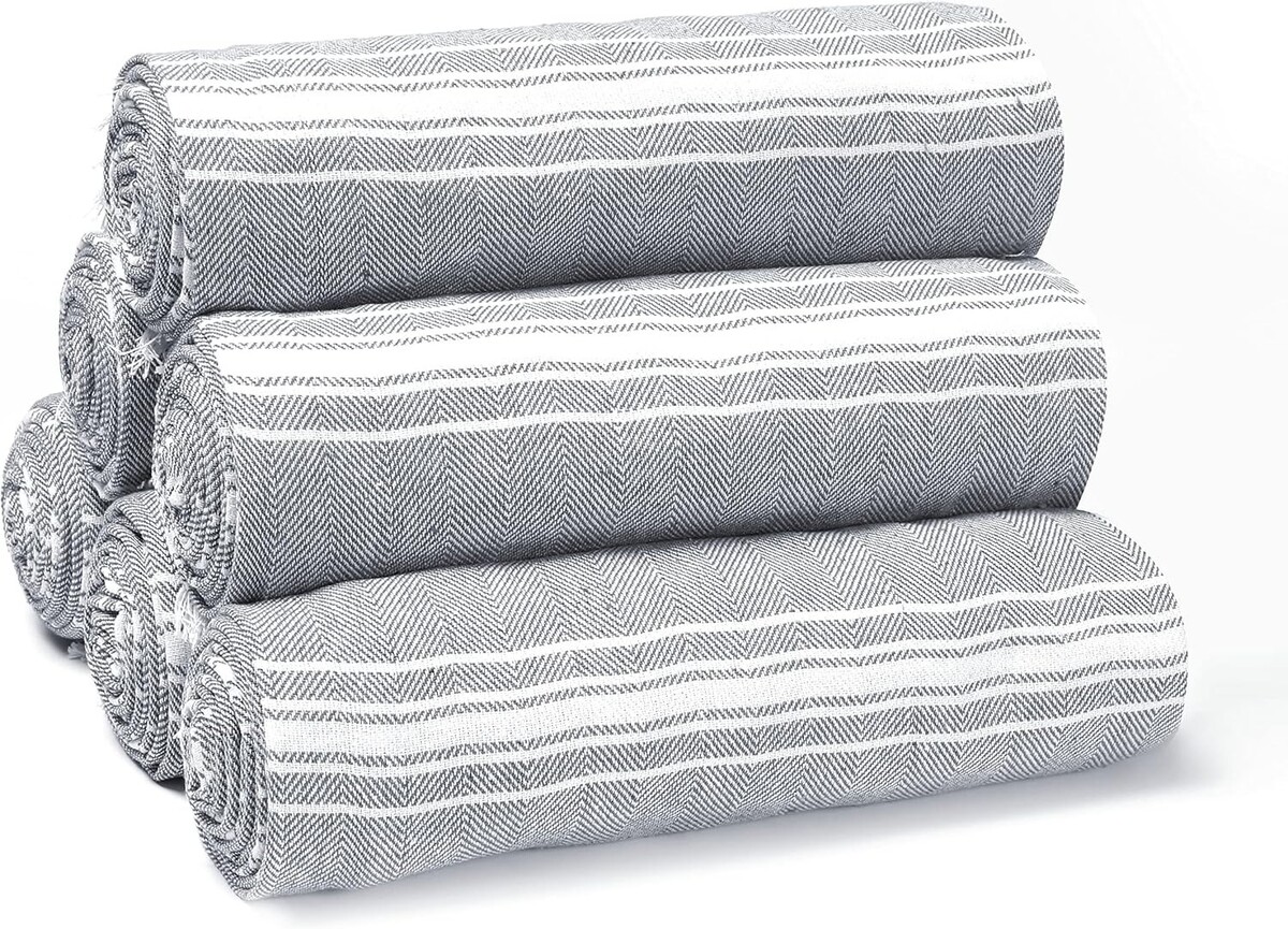 Elegant Set of 6 Oversized Turkish Towels 36x71 - Charcoal Grey Chevron Design